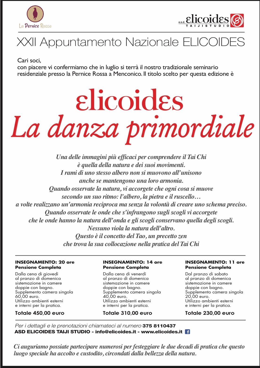 L’associazione sportiva dilettantistica Elicoides Taijistudio da venti anni diffonde i principi e la pratica del Tai Chi Chuan con l’obiettivo di attivare e potenziare l’Energia vitale Qi, innata in ognuno di noi, attraverso i movimenti elicoidali della vita, dei quali anche noi siamo manifestazioni.